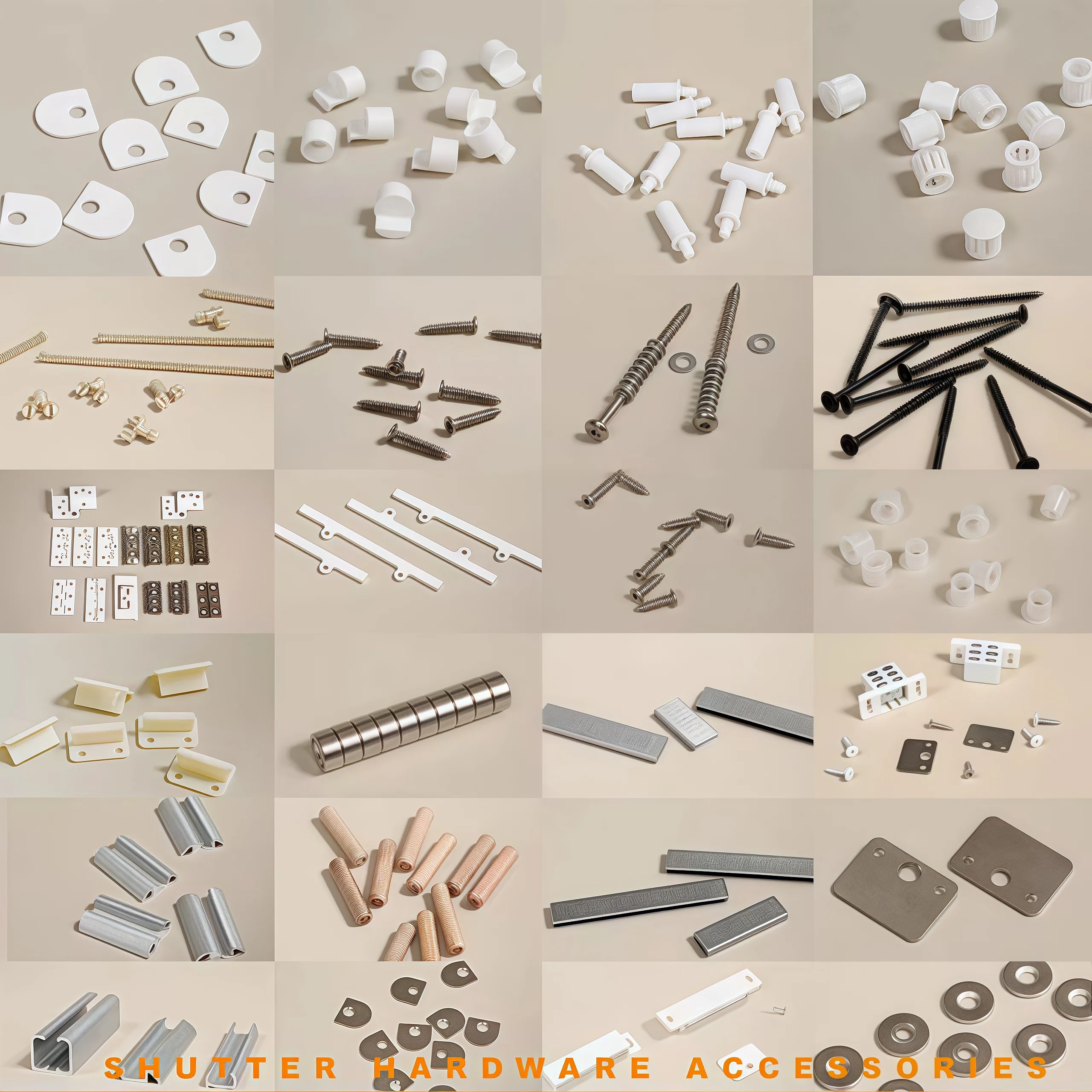 Shutter pins, Screws, Hinges, Magnets, Hoffman key, End cap, Aluminium tube, ect |