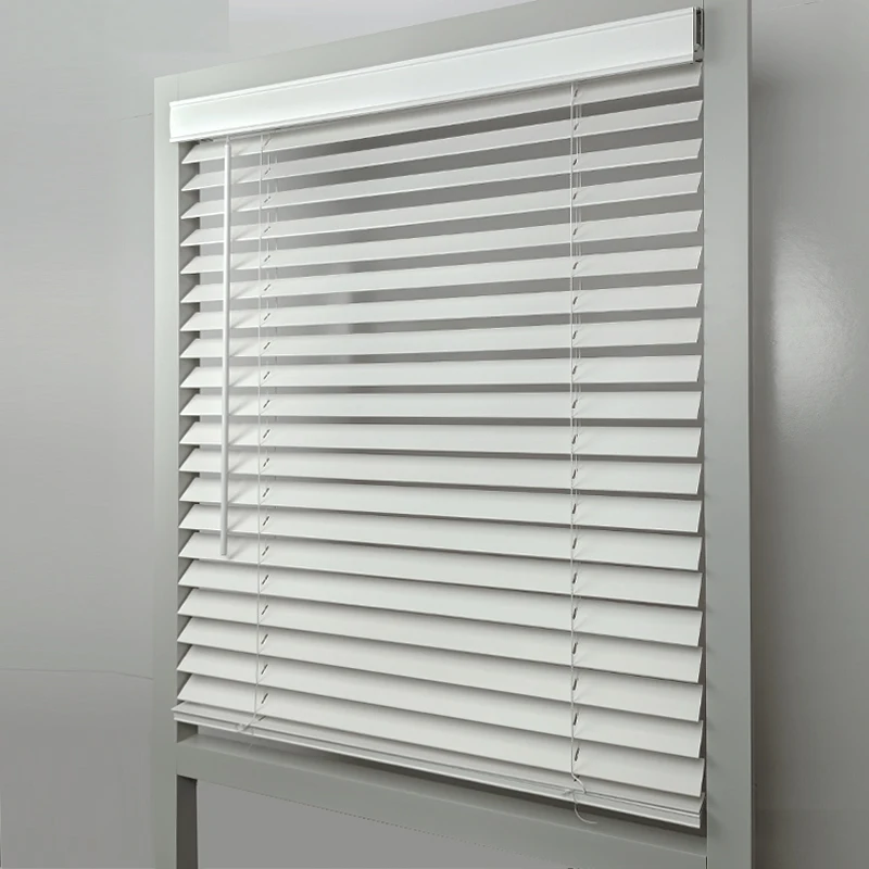 Upgrade your home with the Huasheng Modern Minimalist Style Cordless Wood Blinds in classic white. These sleek and sophisticated blinds are the perfect addition to any room, offering both style and functionality.