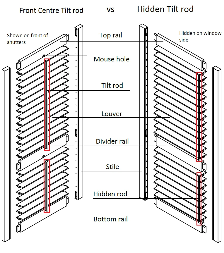 Louvers( reinforced louver), Rail, Stiles( reinforced), Frames, Hole Strip, Tilt rod |